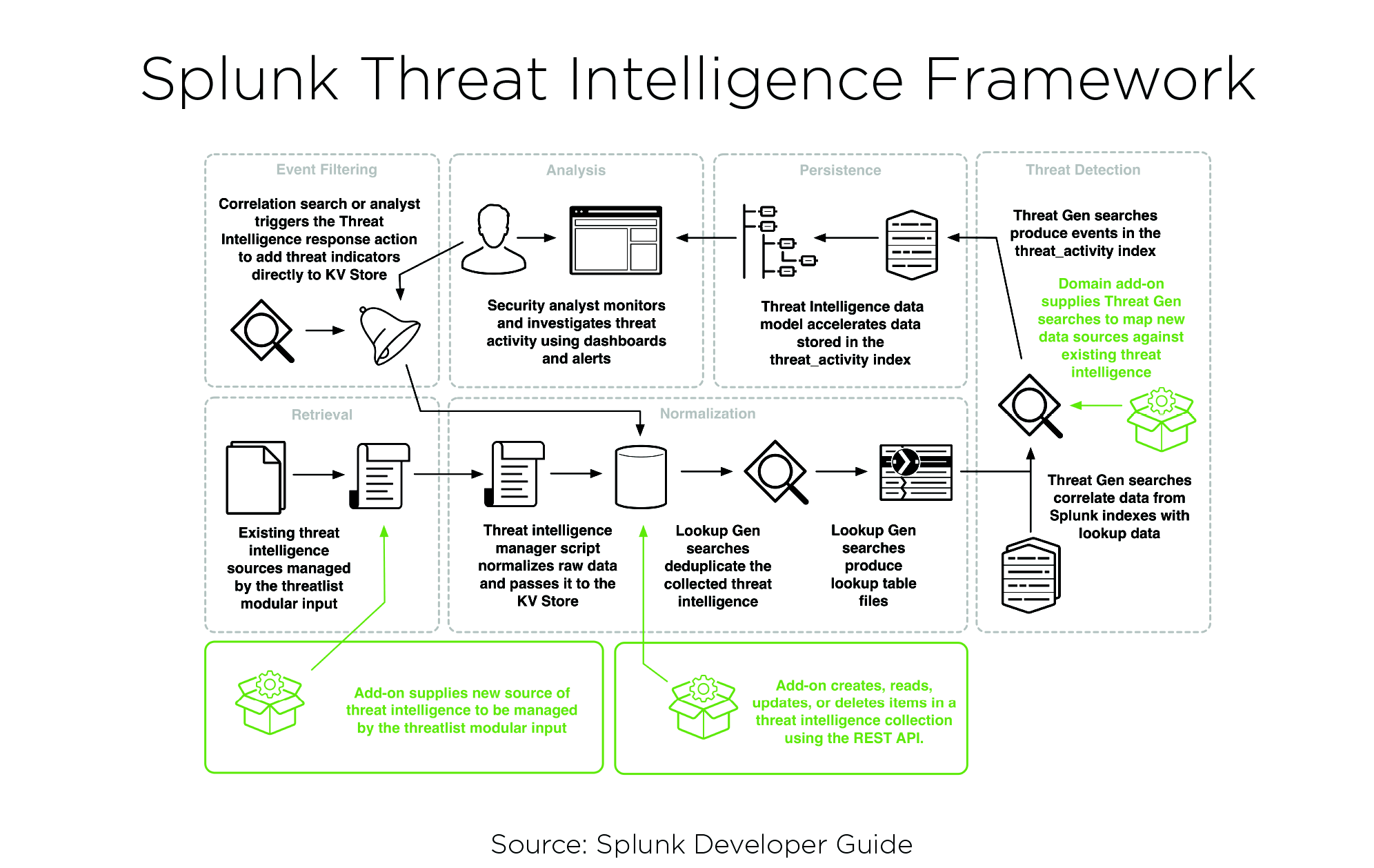 This is also drawn out in the diagram from the Splunk Developer Guide detailing the Splunk Threat Intelligence Framework