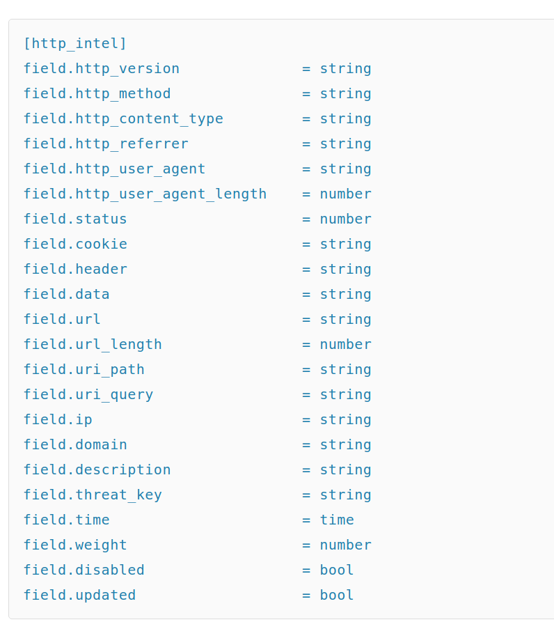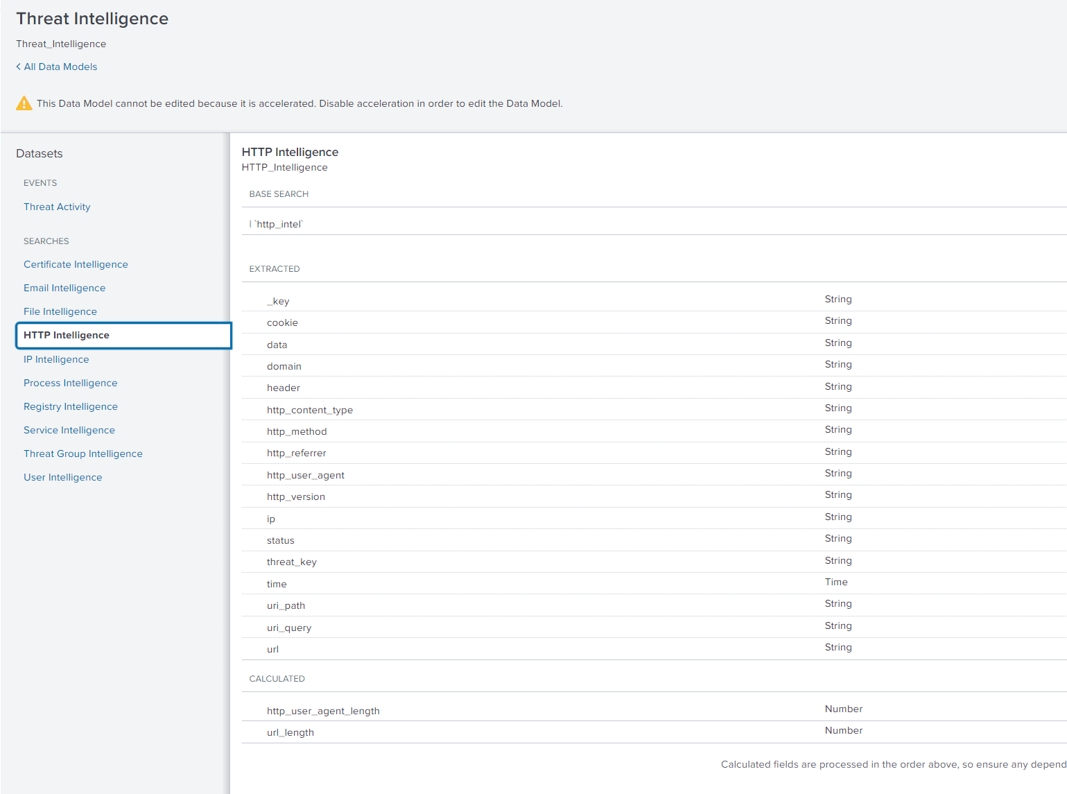 | `http_intel`Next we verify if the data made it into the Threat Intelligence datamodel